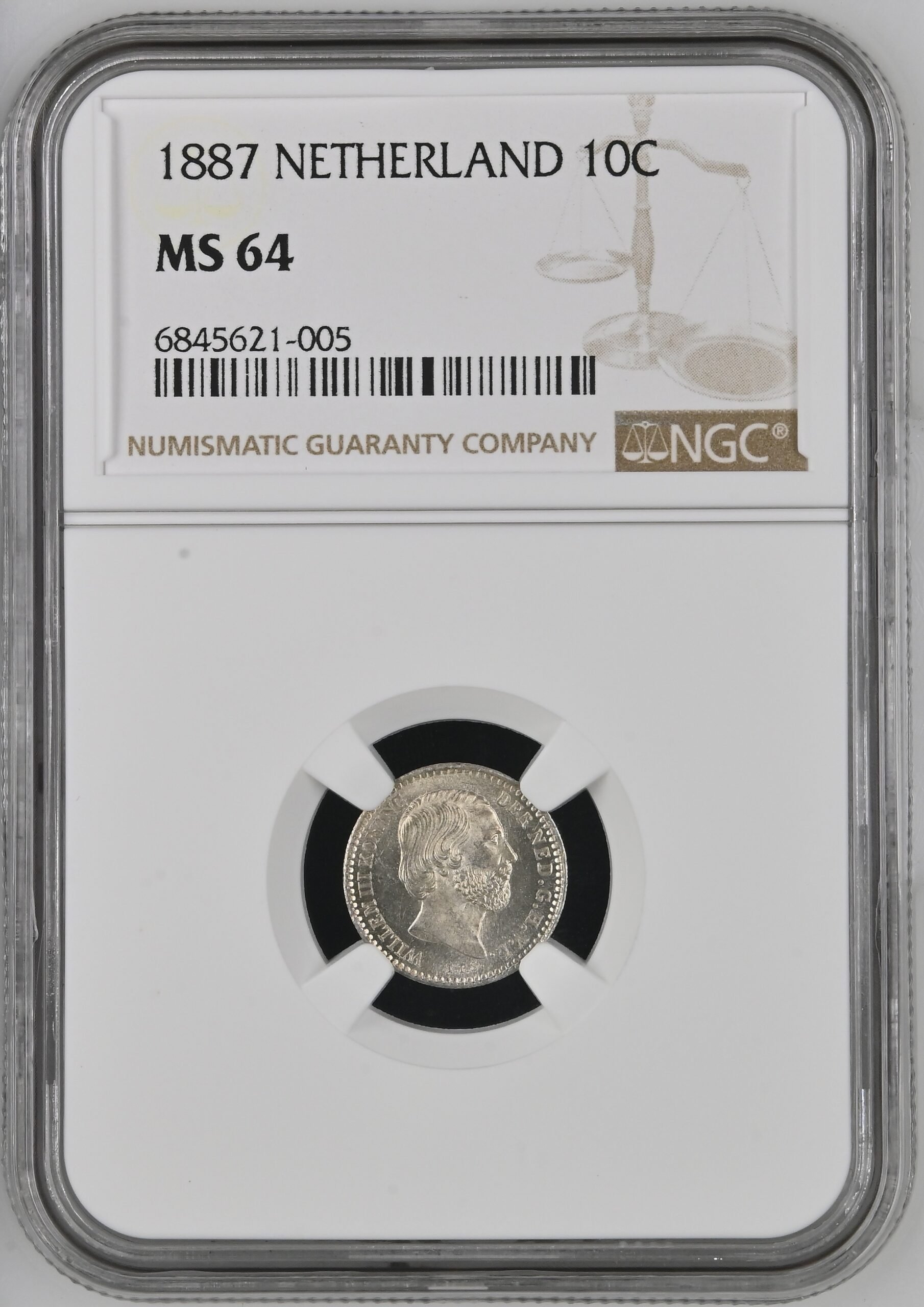 Koning Willlem III 10 cent 1887 MS64 NGC gecertificeerd (pop 7/4)