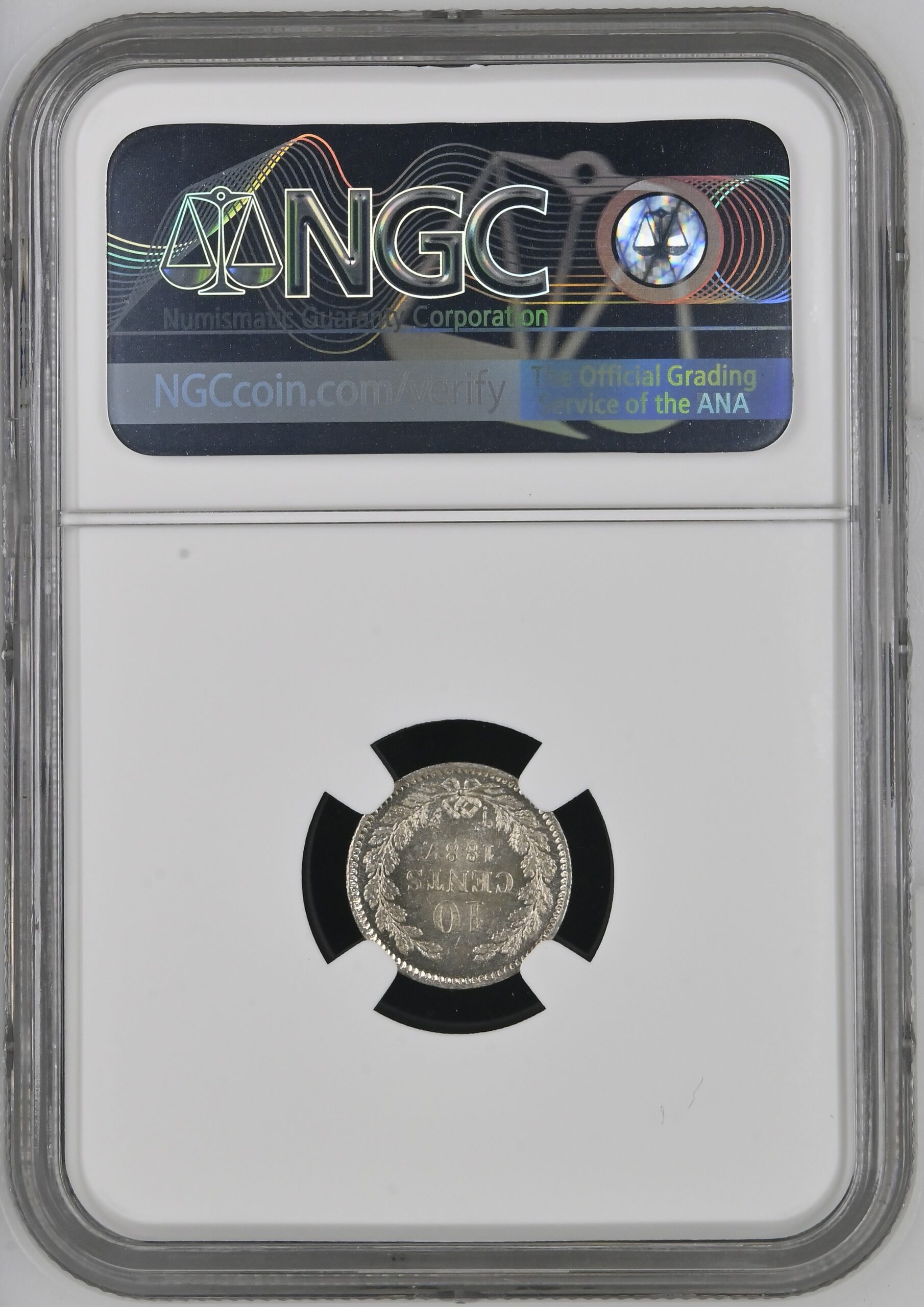Dit is een door de NGC gecertificeerde en geslabde zilveren dubbeltje / 10 cent 1887 MS64 Koning Willem III. De door NGC bepaalde kwaliteit is MS64. Bij NGC zijn er 7 munten in deze kwaliteit geslabd en één van deze verkopen wij. Er zijn door NGC 4 munten geslabd in een hogere MS score.