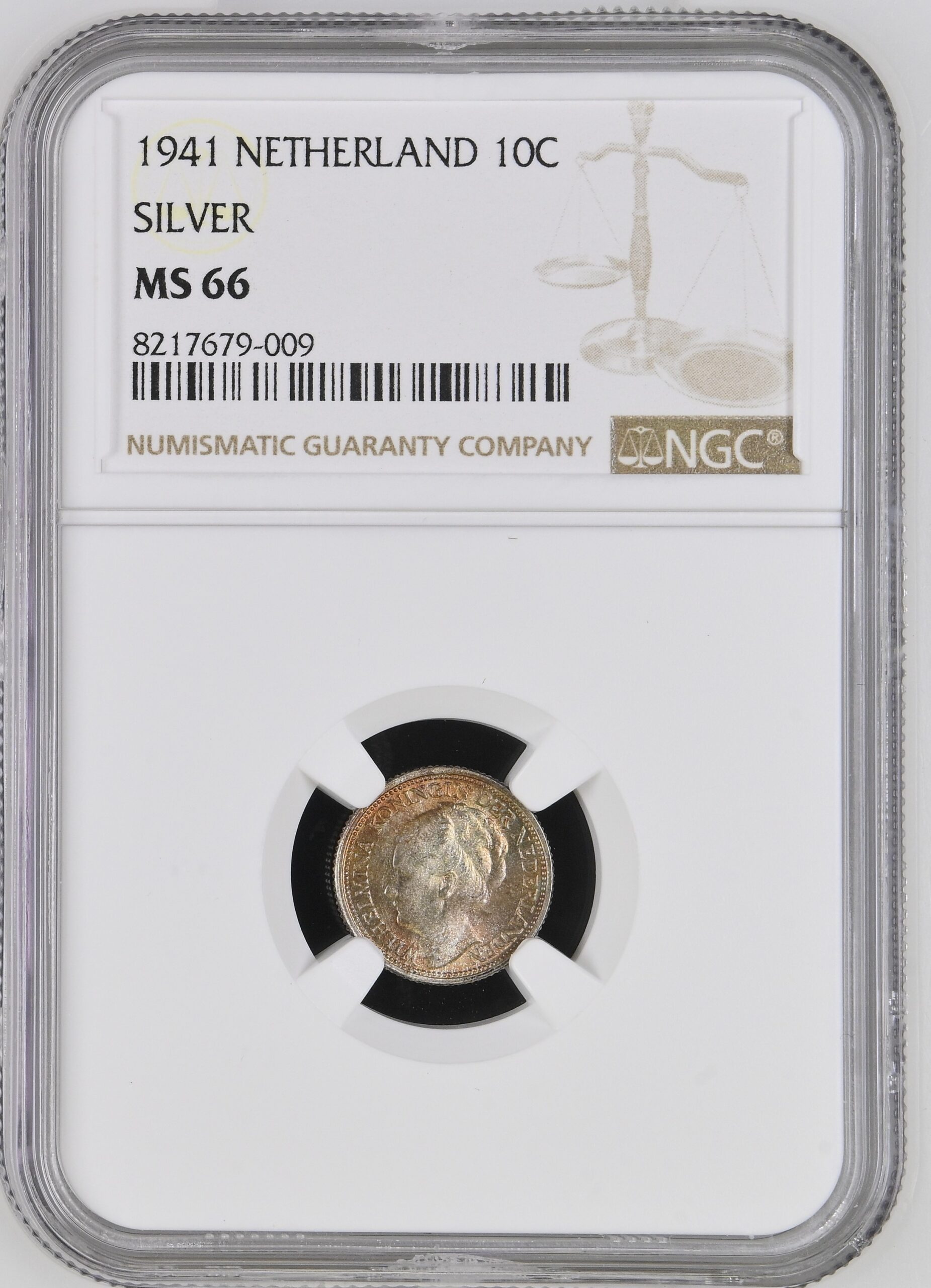 Koningin Wilhelmina 10 cent 1941 MS66 NGC gecertificeerd (Top pop 4/0)