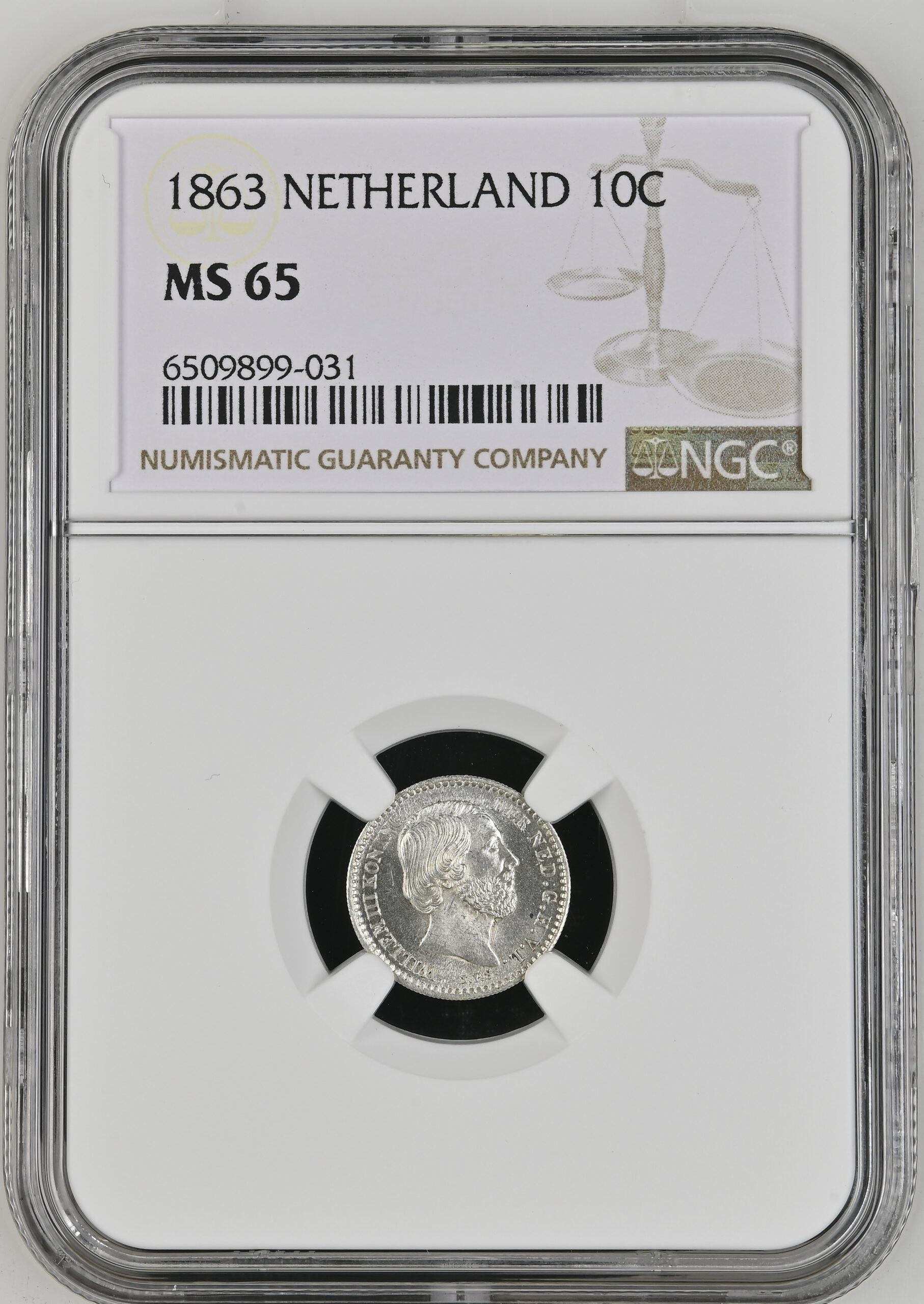 Koning Willem III 10 cent 1863 MS65 NGC (Top pop 2/0)