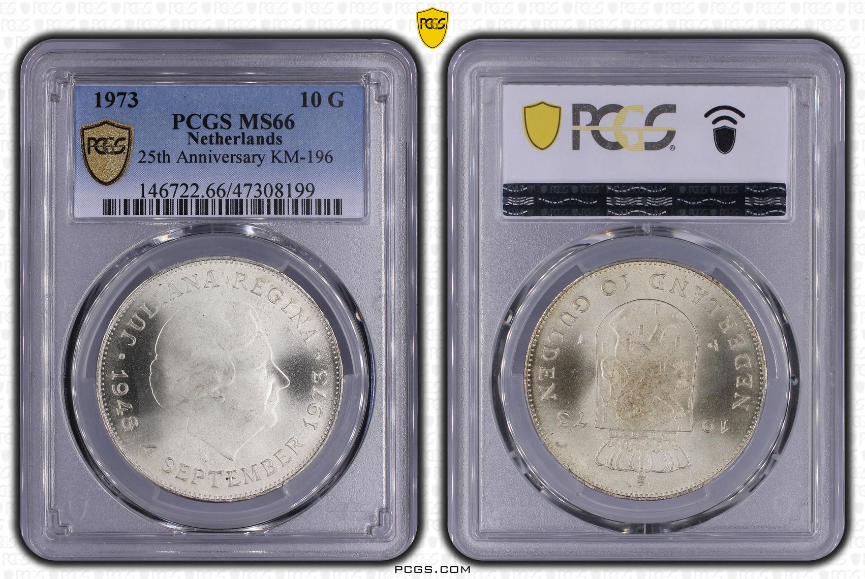 Koningin Juliana 10 gulden 1973 Jubileum PCGS MS66 (pop 36/33)