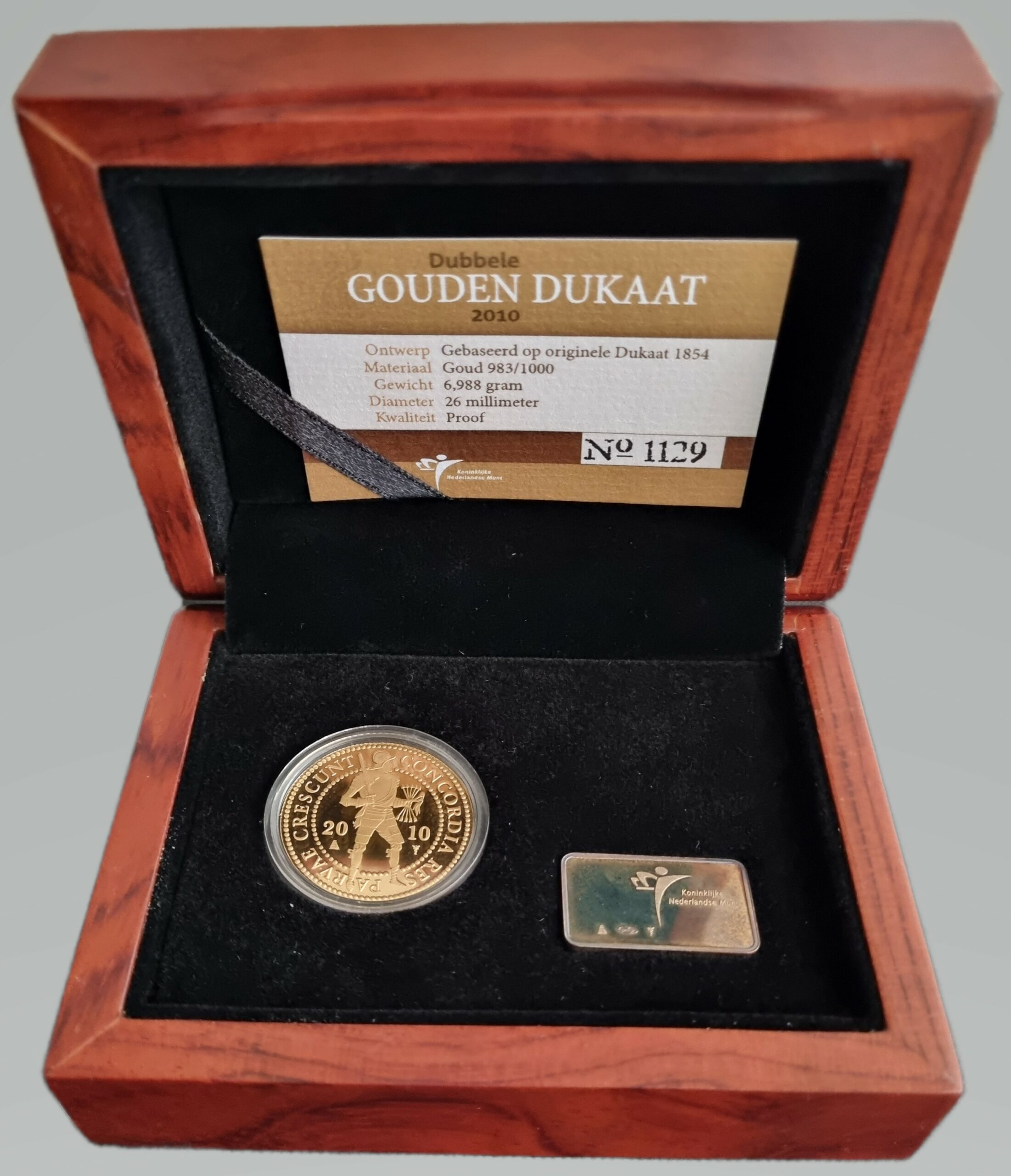 De gouden dubbele dukaat 2010 weegt per stuk 6,988 gram en bevat 983/1000 goud. In elke munt zit 6,86 gram goud. De oplage van het jaar 2010 is 1.640 stuks.