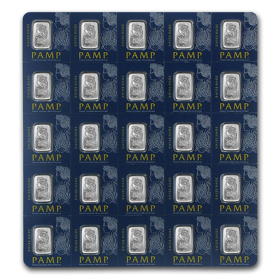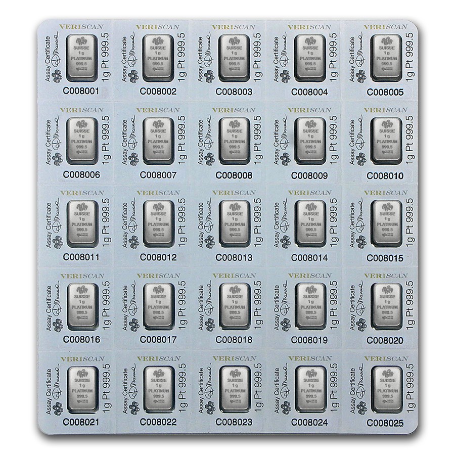 Deze unieke combinatie van 25 x 1 gram platina baren maakt het voordelig om .9995 fijn platina te kopen, geproduceerd door PAMP, ‘s werelds grootste producent van edelmetalen.
