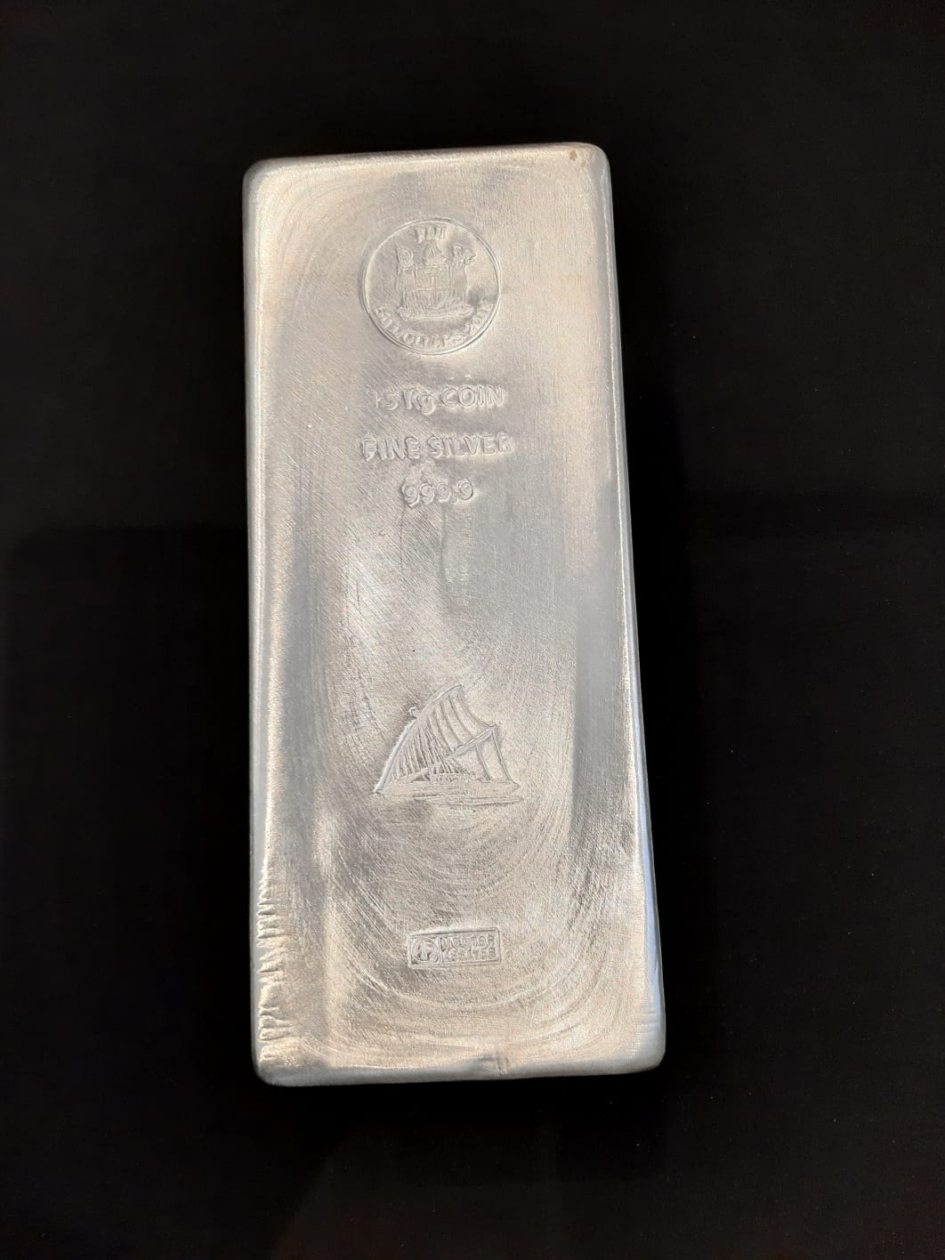 De muntbaar bevat een zilvergehalte van 99,99% . De baren wegen 15000 gram oftwel 15 kilo.