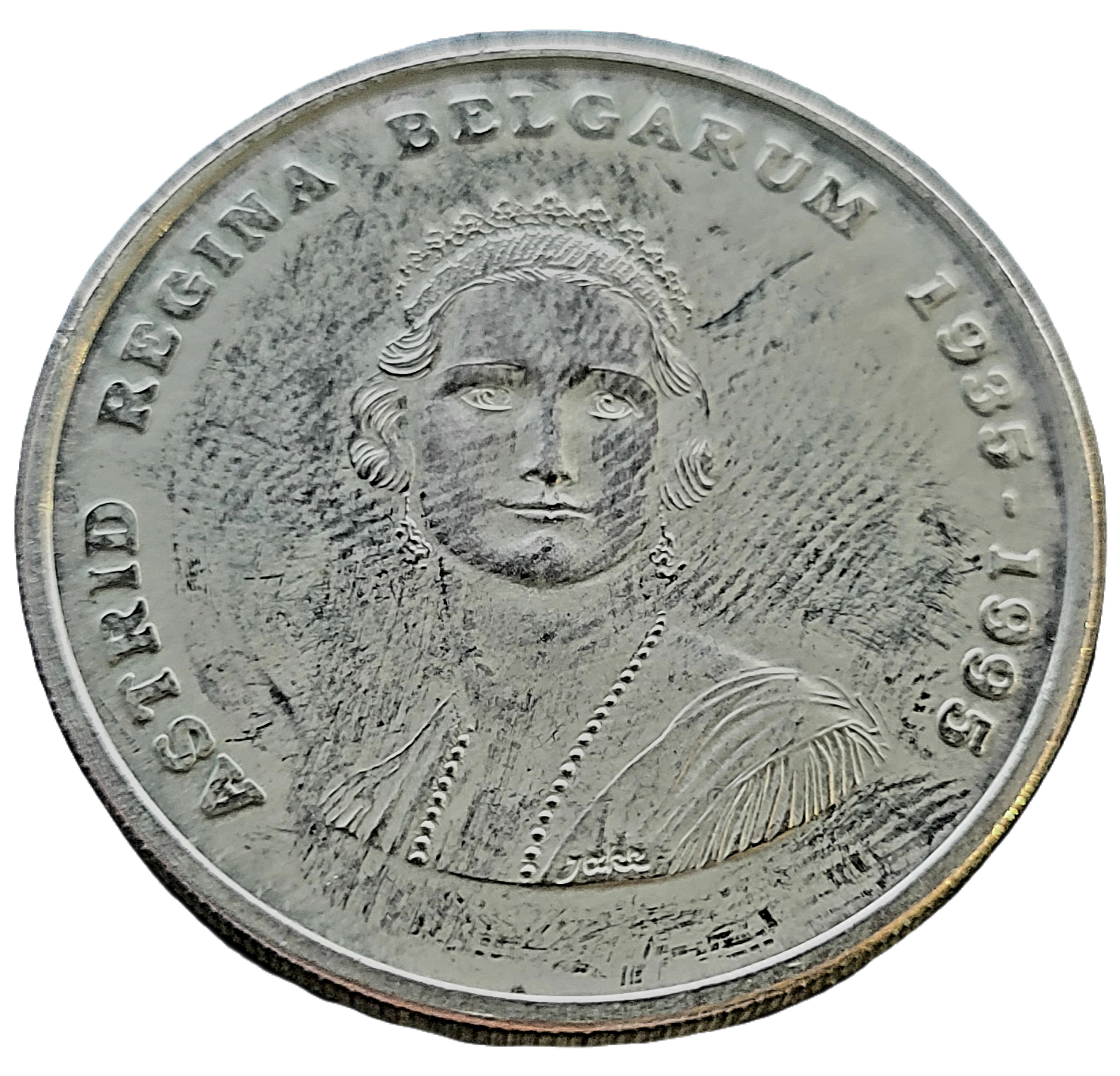 - 1995: Een ontroerend eerbetoon aan de 60e sterfdag van Koningin Astrid, diepgeworteld in de harten van het Belgische volk. Ook geslagen in zilver (.925) met een gewicht van 18.75 gram en een diameter van 33 mm.