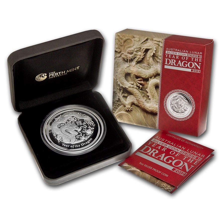Lunar II – Proof Year of the Dragon – 5 oz 2012 (5.000 oplage) Zilver