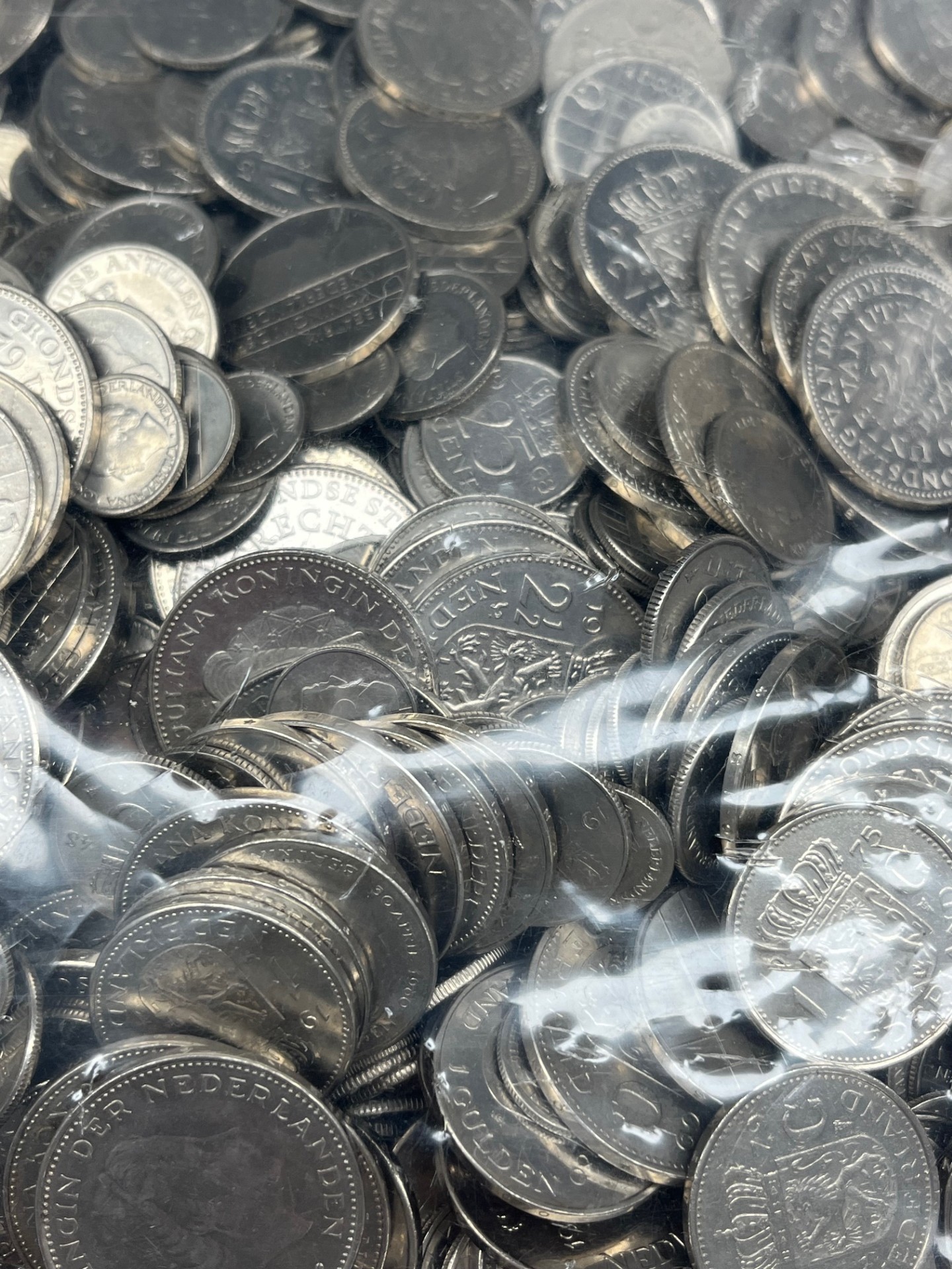 Ontvang een gevarieerde zak met in totaal 3,5 kilogram netto aan originele Nederlandse nikkelen munten, variërend van dubbeltjes tot en met rijksdaalders. Deze munten zijn afkomstig uit diverse jaren en bieden een prachtige doorsnede van de Nederlandse circulatiemuntgeschiedenis.
